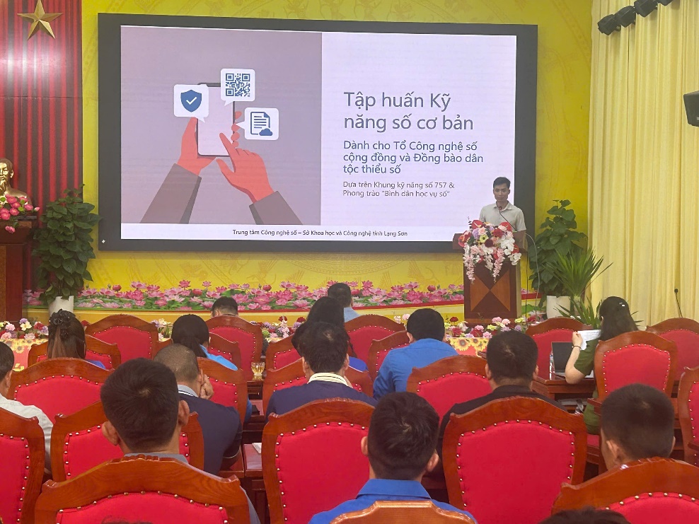 Ngày 28/4/2026, Trung tâm Công nghệ số - Sở Khoa học và Công nghệ phối hợp với UBND xã Công Sơn và phường Kỳ Lừa tổ chức Hội nghị tập huấn, cập nhật kiến thức kỹ năng số và an toàn thông tin cho thành viên Tổ công nghệ số cộng đồng và đồng bào dân tộc thiểu số năm 2026. Hội nghị thu hút hơn 200 đại biểu tham dự là cán bộ phụ trách chuyển đổi số, thành viên Tổ Công nghệ số cộng đồng và người dân tại xã, phường.